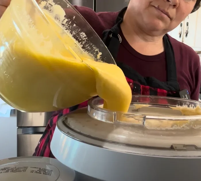 After cooling, the potatoes are mixed with sugar, melted butter, salt, and beaten eggs to create a rich combination that enhances the dough.