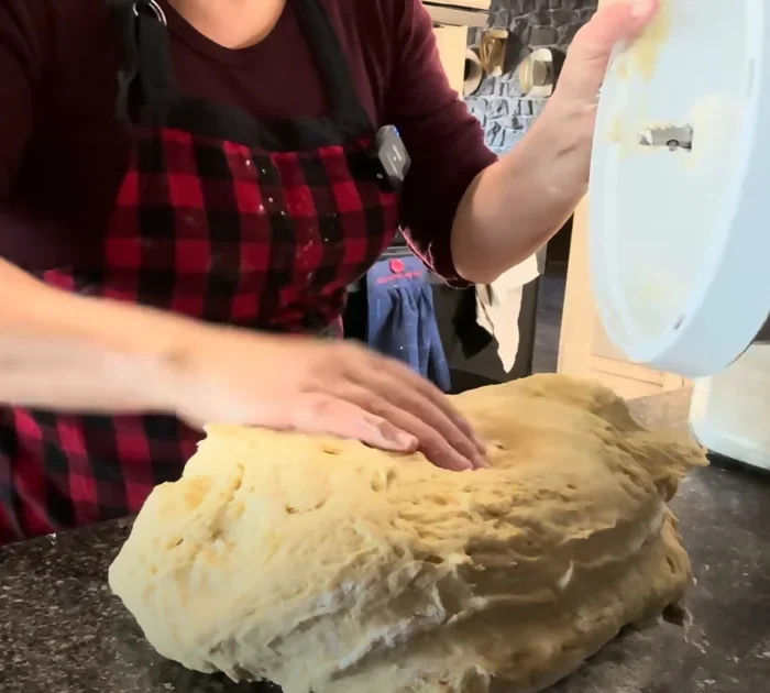After that, the dough is put in a big basin, covered, and allowed to rise once moreβ€”this time near to a pot of rendering tallowβ€”using the heat to help it rise.