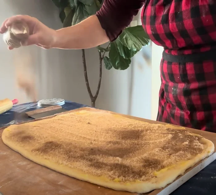 It is smeared with butter, stretched out thinly, and liberally dusted with cinnamon and brown sugar.