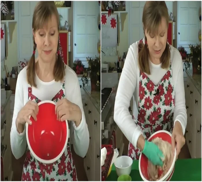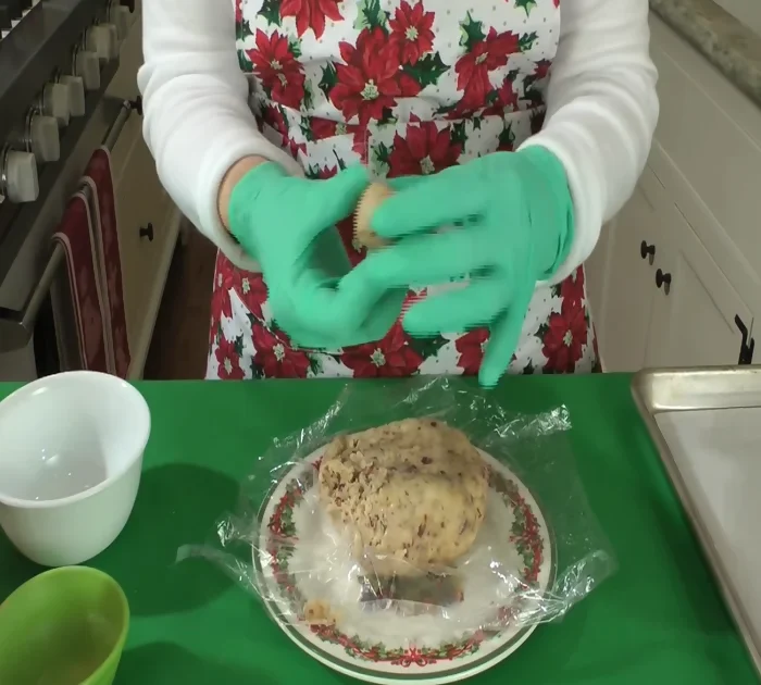 First Step: In a mixing dish, combine all the ingredients, excluding the powdered sugar. All ingredients should be carefully mixed by hand until they stick together to create a large lump of dough.