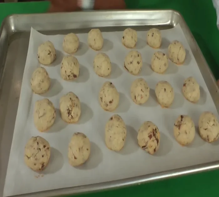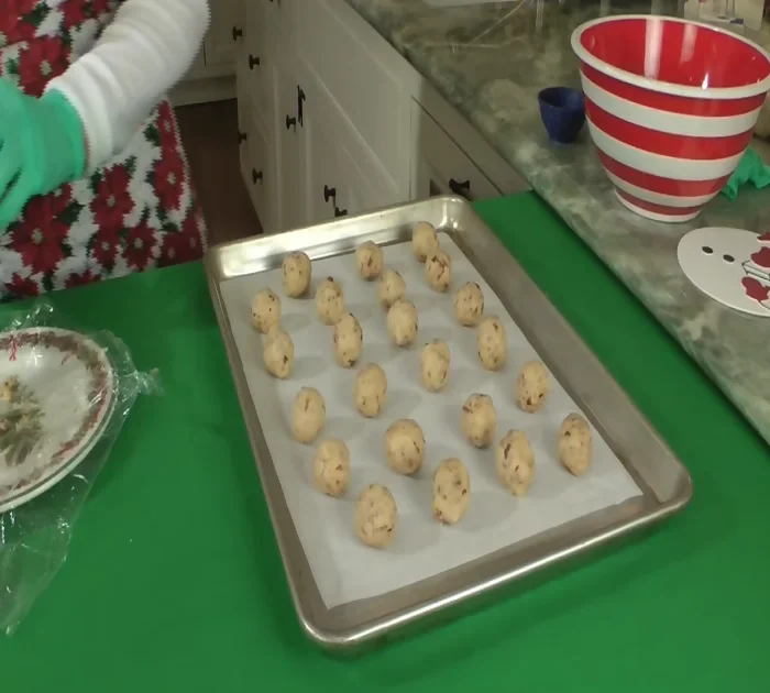 Third step: To form the dough into little balls. Assemble the parchment paper-lined tray on which you will subsequently place the balled-up dough pieces. At this stage, roll the dough into 1-inch cookies and place them on the tray, one inch apart. Continue doing this until all of the dough has been utilized.