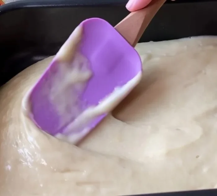 Evenly distribute the cake mixture after pouring it into a deep baking pan.