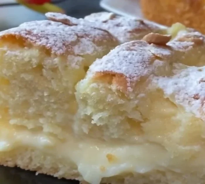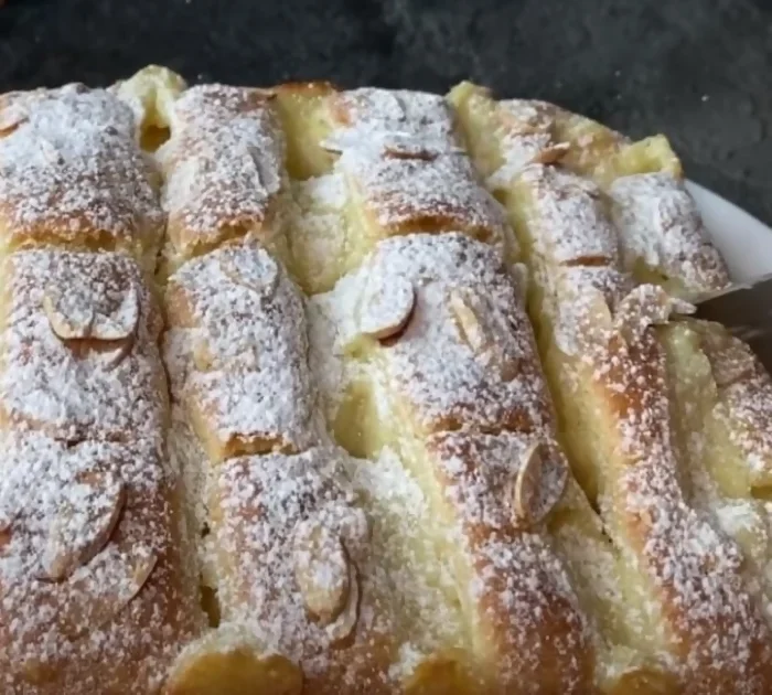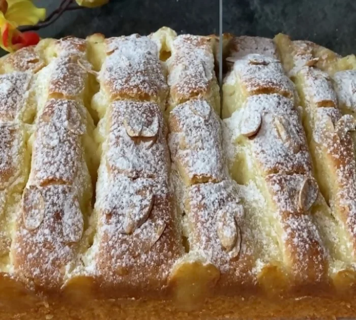 When it’s finished, take it out of the oven and sprinkle powdered sugar on top.